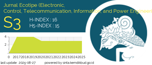 - The author acknowledges that the Jurnal Ecotipe (Electronic, Control, Telecommunication, Information, and Power Engineering) has the right to publish for the first time with a Creative Commons Attribution 4.0 International License.