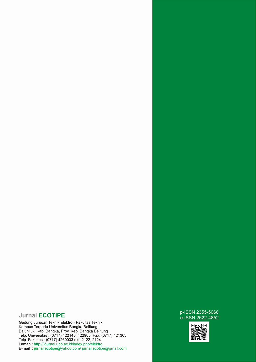 Vol. 7 No. 2 (2020): Jurnal Ecotipe, October 2020